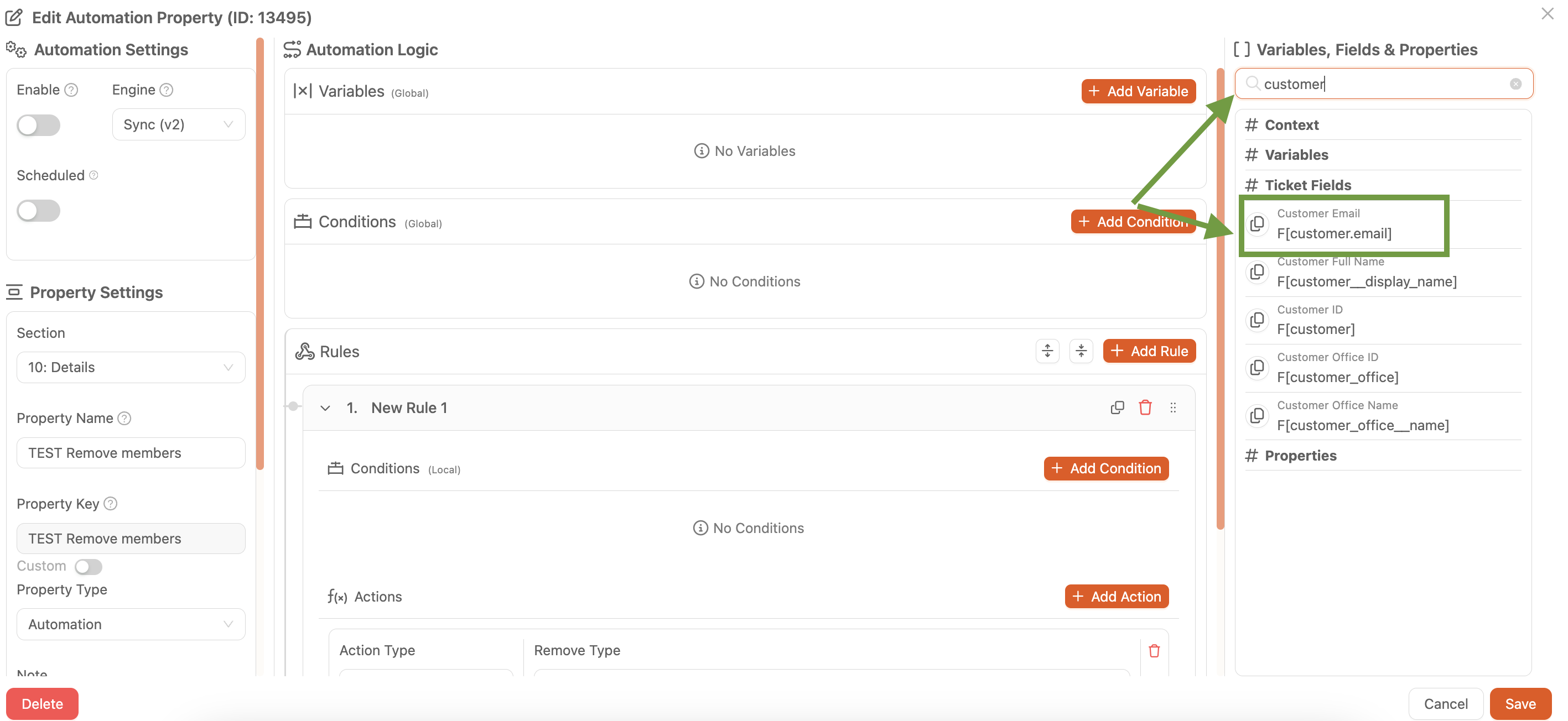 We've enhanced the BPA options by adding the customer email display. The new field F[customer.email] is now available on the right side of the BPA options panel.